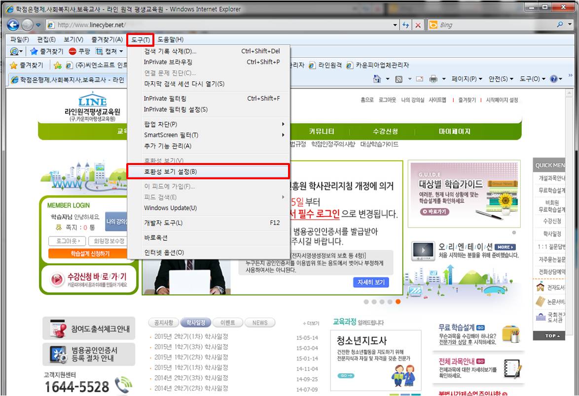 IE8 ¹öÀü ÀÌ»óÀ» ÀÌ¿ëÇϽô ºÐÀº ¾Æ·¡Ã³·³ ȣȯ¼º º¸±â¸ðµå¸¦ Ŭ¸¯Çؼ °ÀǸ¦ ÀÌ¿ëÇØ Áֽñ⠹ٶø´Ï´Ù.